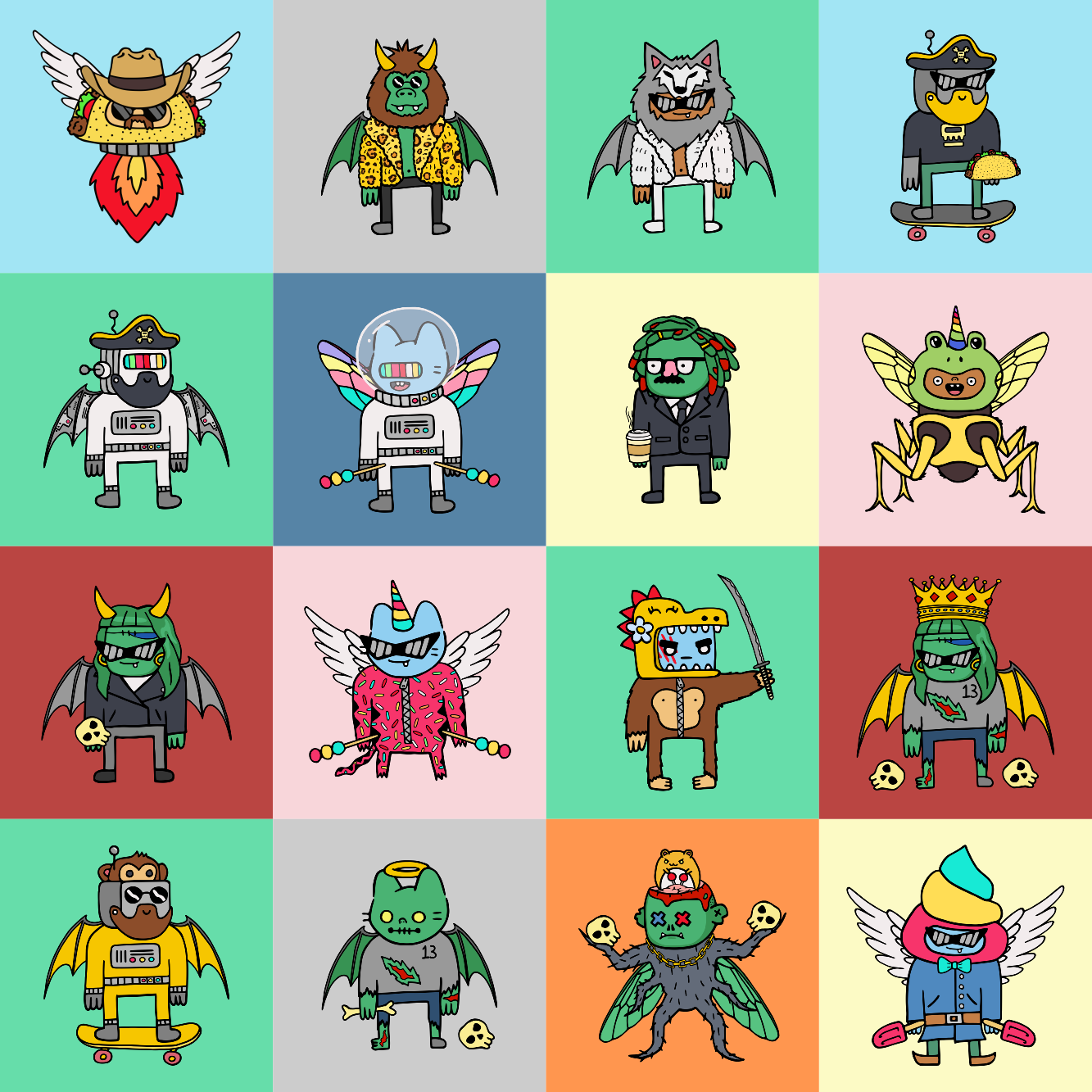 Toy Boogers also earned the support and recognition of many other artists within the NFT space and did collaborations with dozens of other artists, incorporating the unique Toy Boogers character traits into special collaborative pieces of art. Toy Boogers has collaborated with many famous artists and projects such as Deadfellaz, Cool Cats, Robotos, Alien Frens, WonderPals, Foodmasku, and many others. Doug’s most famous collaboration was in the form of his "Kitbash Boogers" collection in 2022, in which he combined the character traits from Toy Boogers, Cool Cats, Deadfellaz, and Robotos, into the first-of-its-kind largescale collaborative mashup consisting of 1,111 handmade characters.