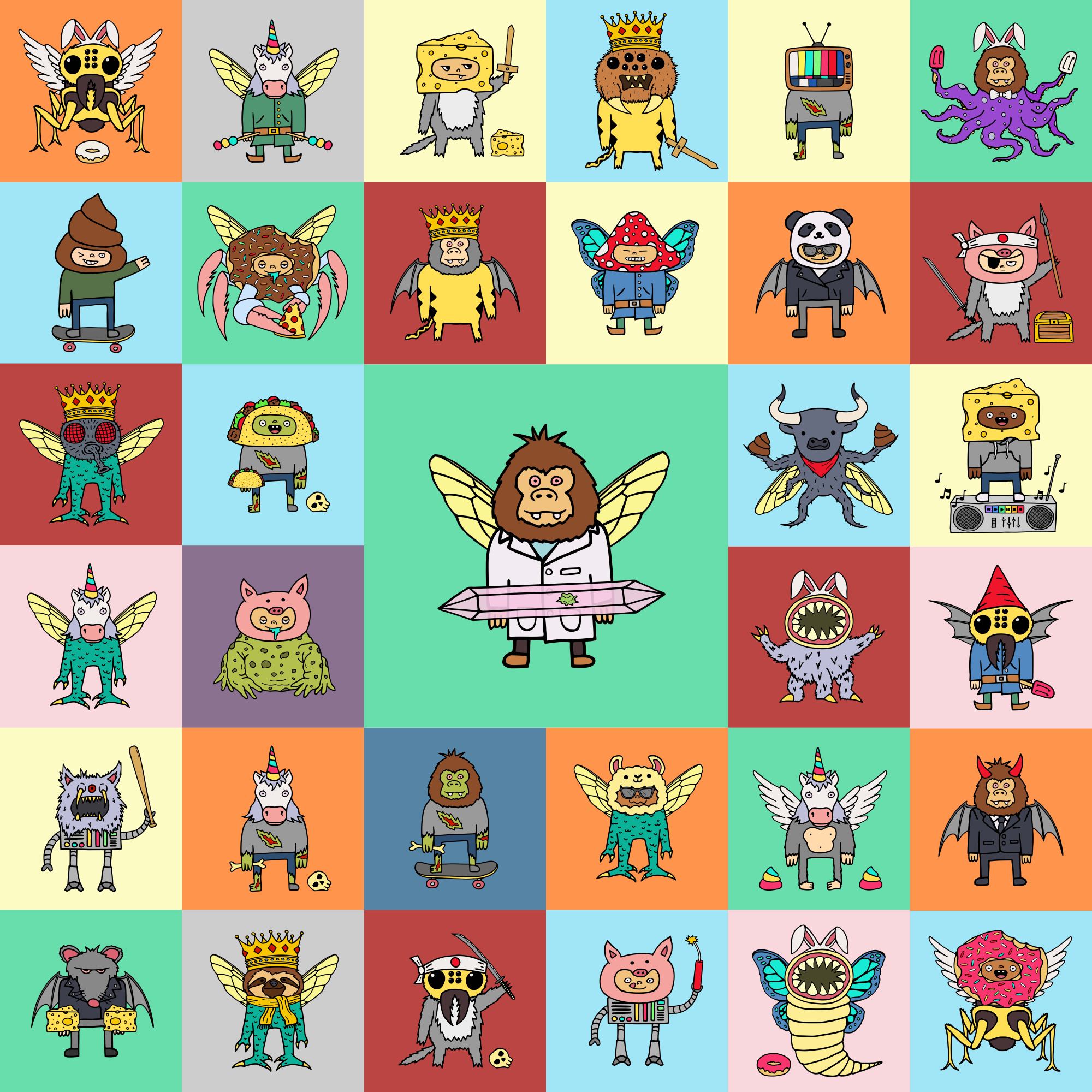 Doug has continued to expand the Toy Boogers universe through his art, stories, and characters over the years. “Toy Stash” is another collection within the Toy Boogers universe focusing on Stash, the Hamster Mastermind and consists of 11,111 total unique variations of this main character. Similar to the previous 100% handmade Toy Boogers and Kitbash Boogers, all 11,111 Toy Stash characters were hand-built over many months of hard work. This collection did use generative tools, but unlike other projects, Doug manually built each character one by one, rather than letting the computer generate them. This hand-built approach was taken so that he could give all 11,111 of them his personal touch and make sure each one was ridiculously awesome! In total, so far Doug has handmade over 15,000 characters throughout his various art collections within the Toy Boogers universe!